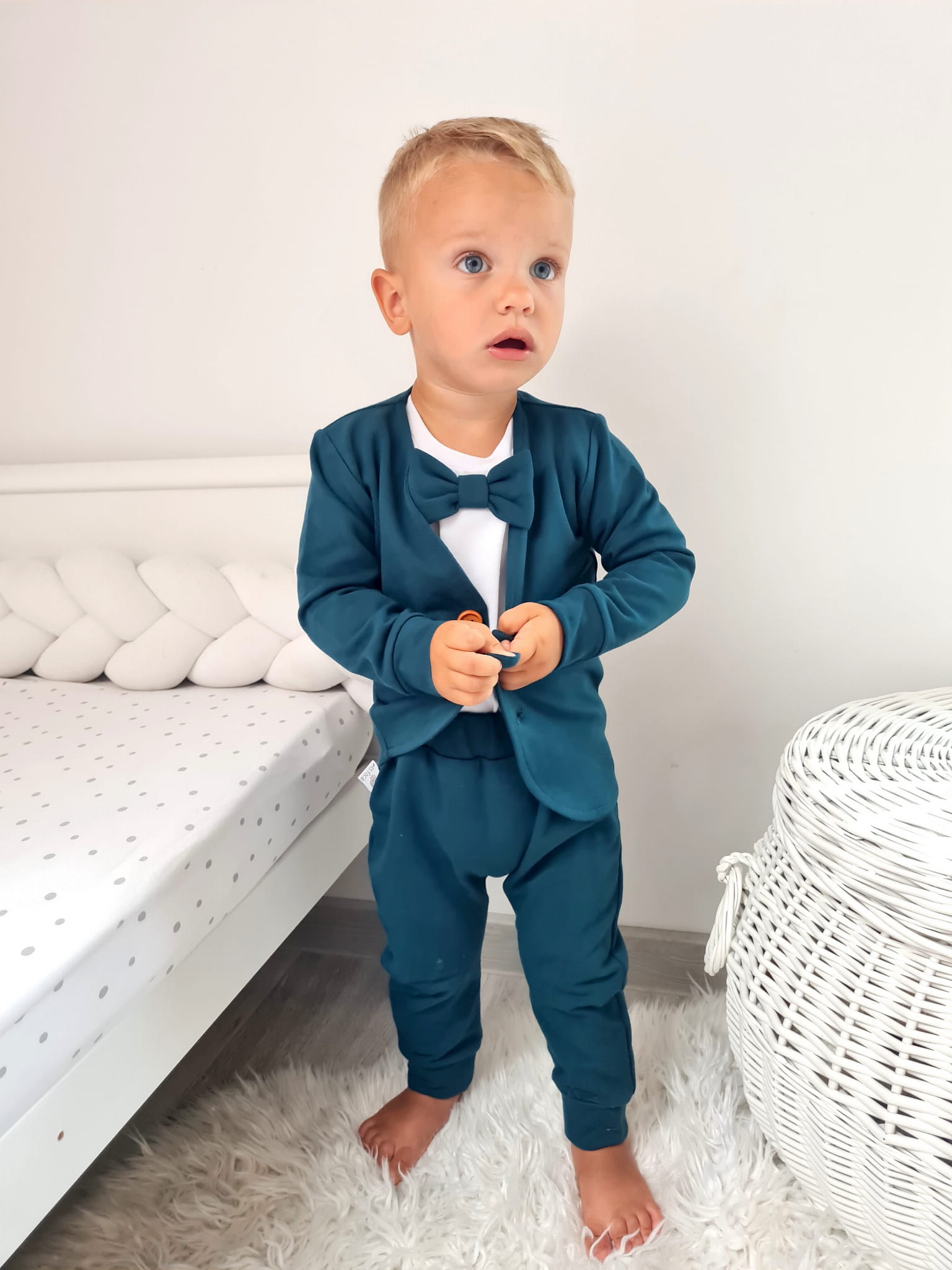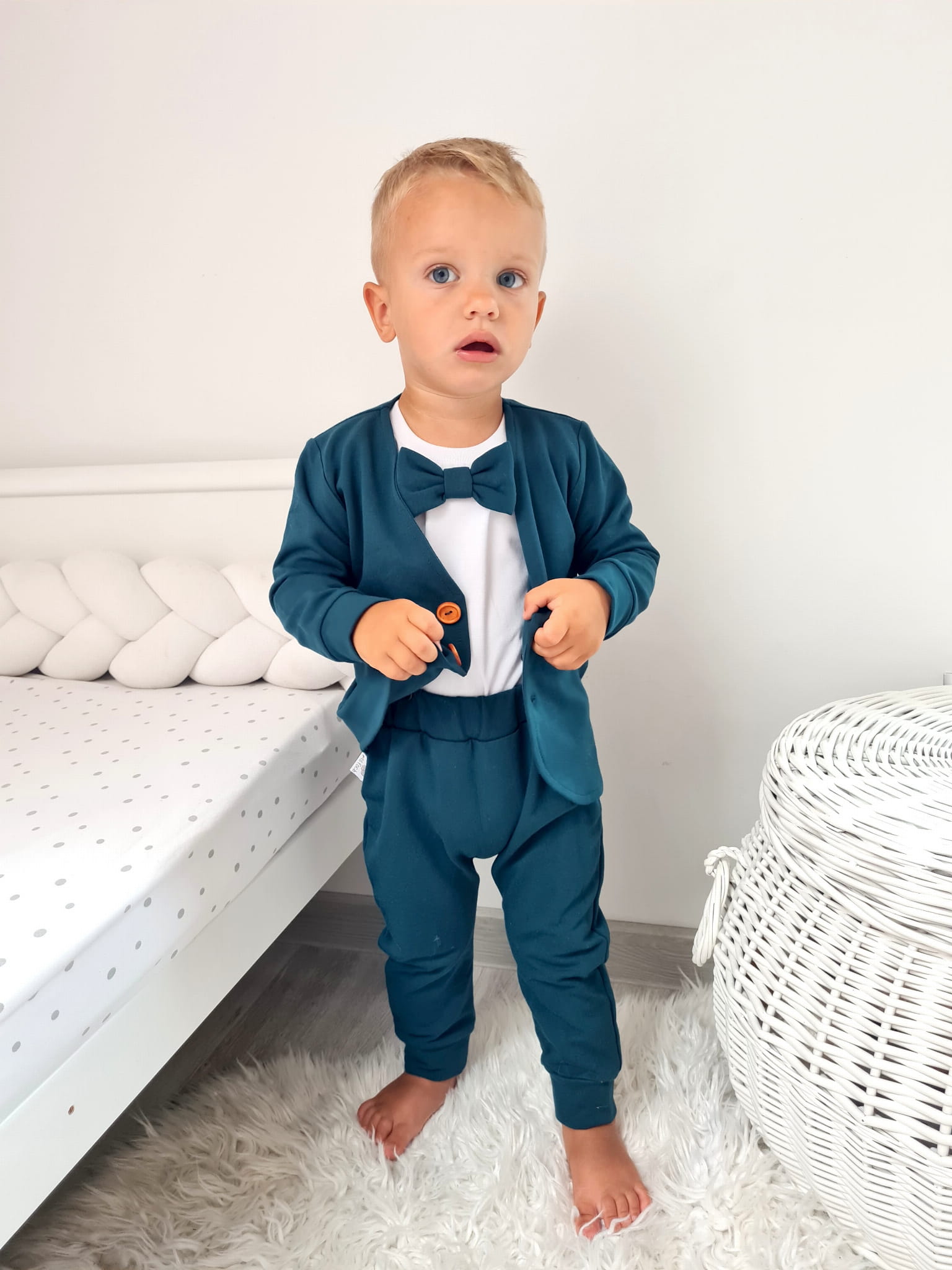 Idealne sprawdzi się jako komplecik na chrzciny oraz na wszelkie uroczystości.