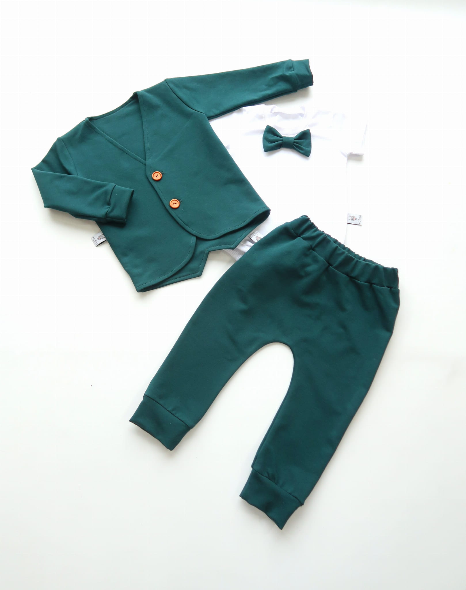 Komplet zieleń butelkowa - frak, body krótki rękaw i baggy