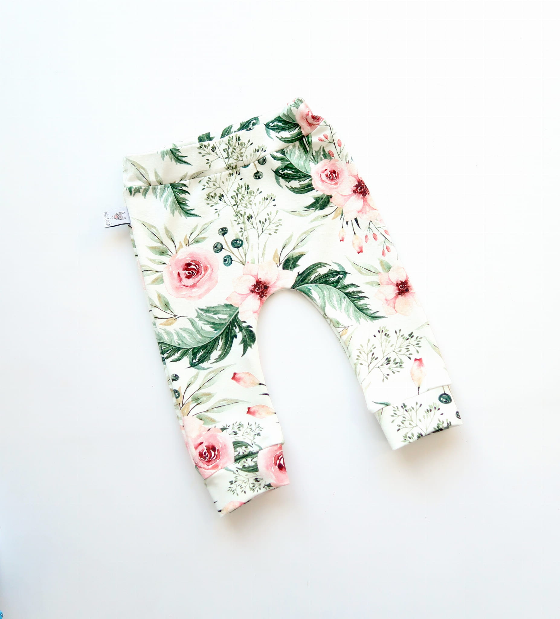 Komplet róż z falbanką i kwiaty w ogrodzie - bluza i legginsy