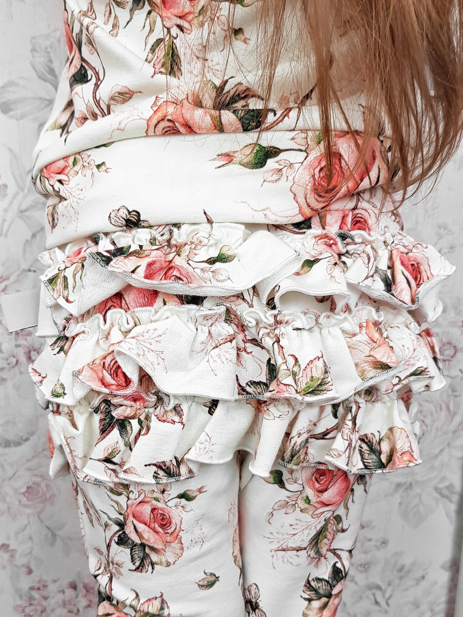 Komplet róże retro - body i legginsy z falbankami