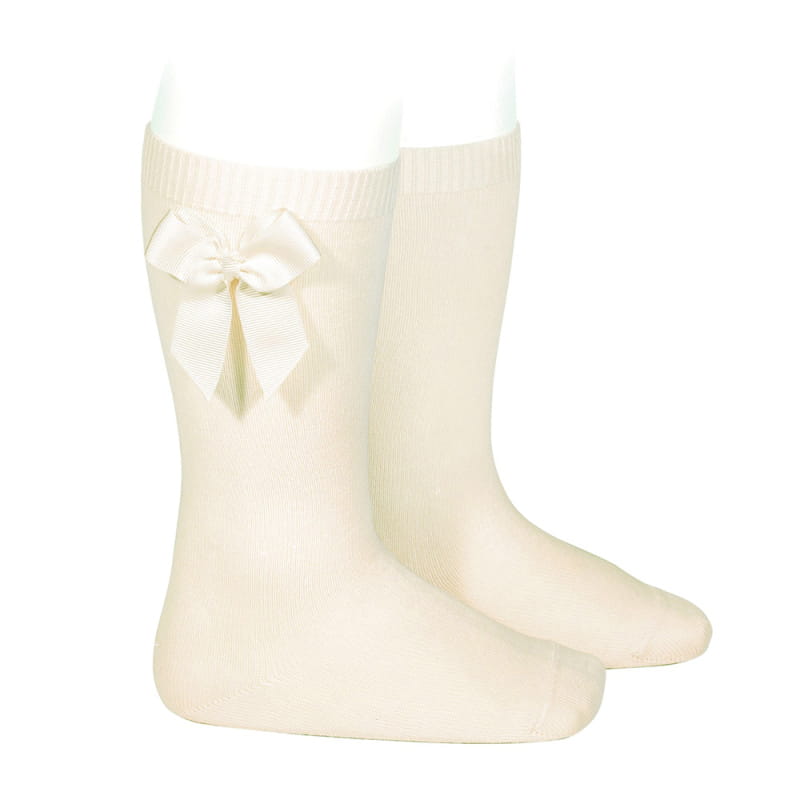 Podkolanówki beżowe z kokardą basic - 3-6 miesięcy (10,5cm)