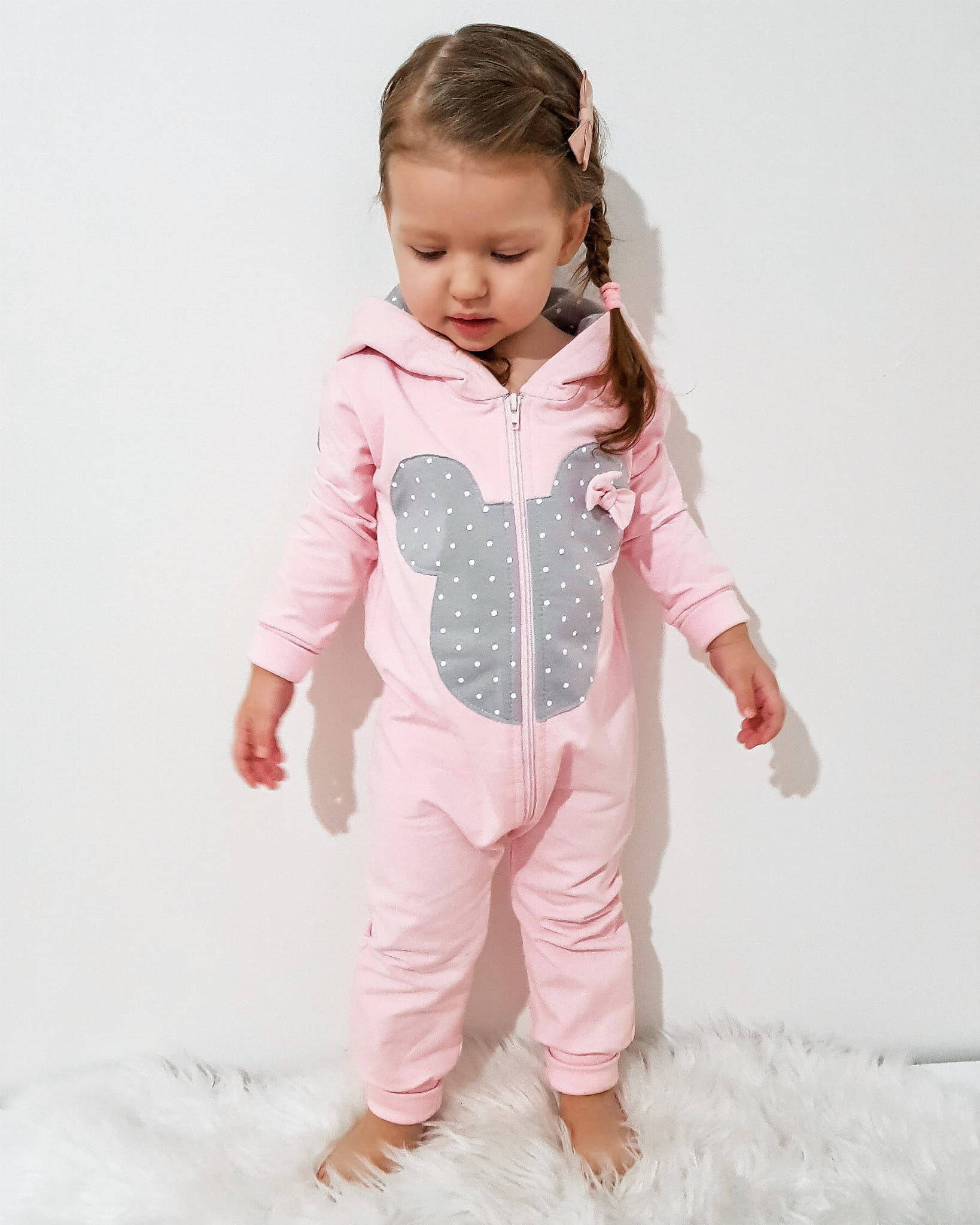Komplet króliczek - róż i groszki - bluza i legginsy