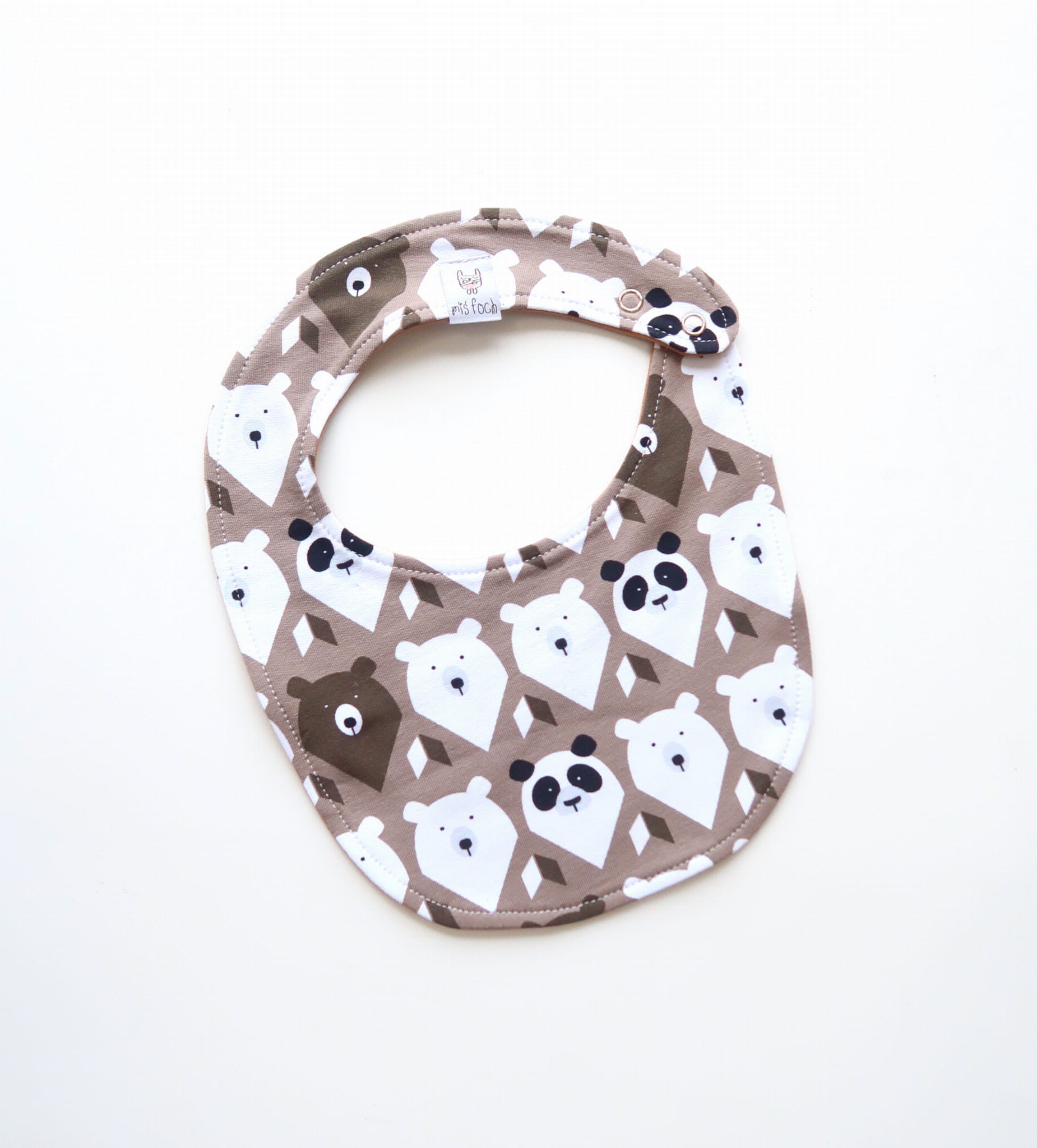 Elegancki i mięciutki śliniak. Zapinany na napy, dwuwarstwowy.