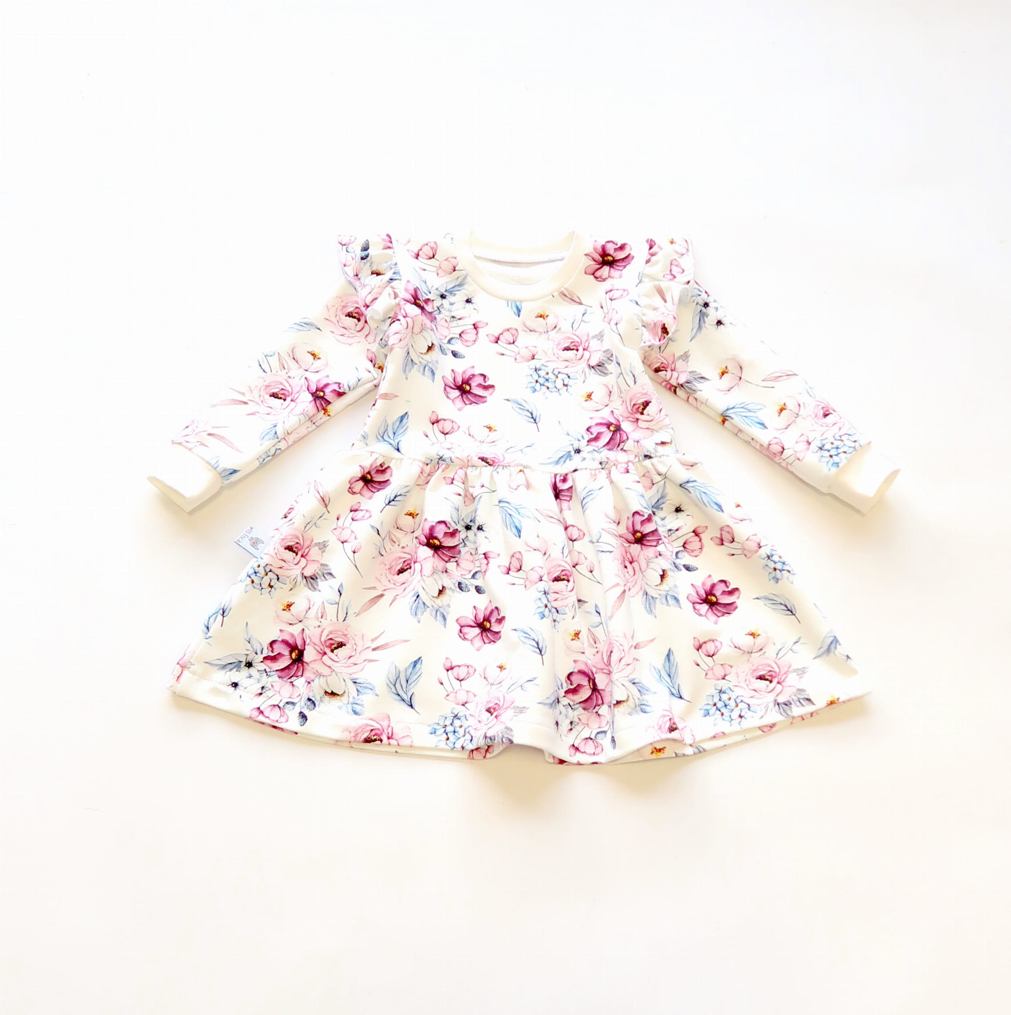 Sukienka akwarelowe kwiaty - rękawek motylek
