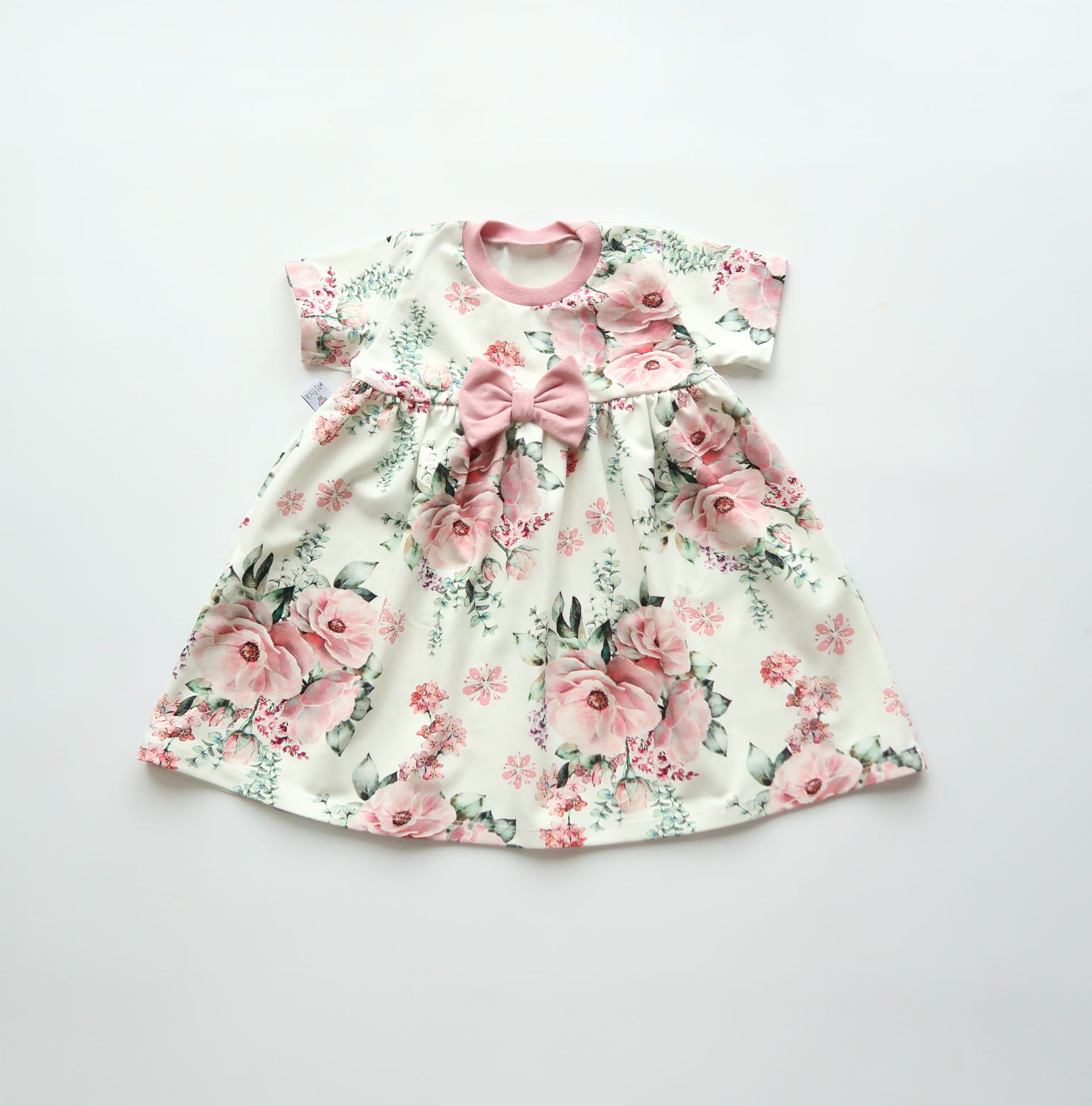 Komplet bukieciki róż - sukienka krótki rękaw i opaska