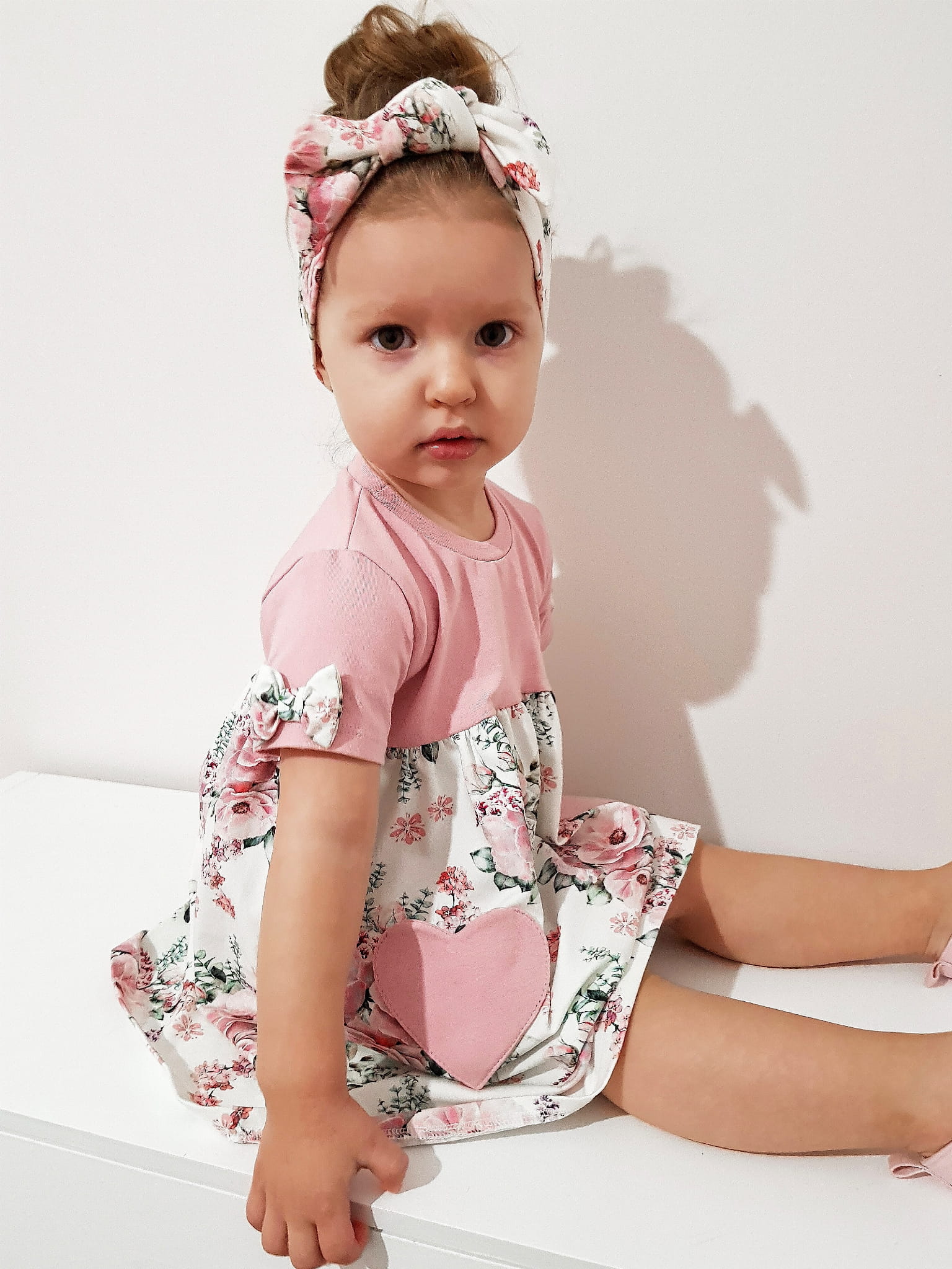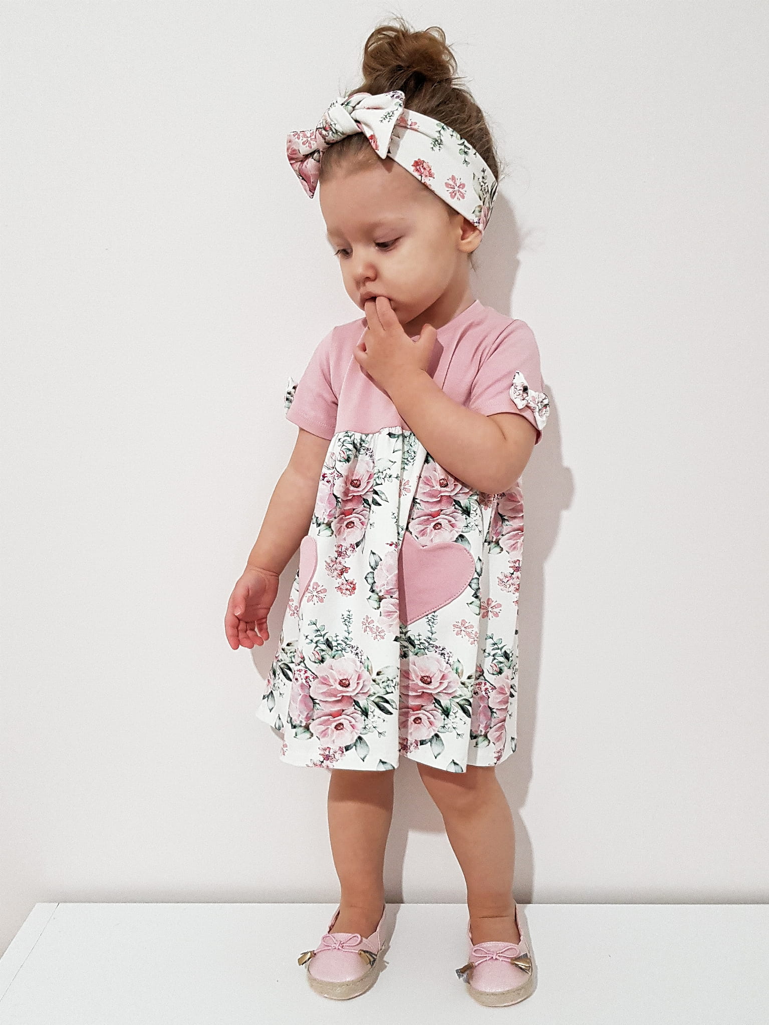 Komplet bukieciki róż - sukienka krótki rękaw i opaska 2