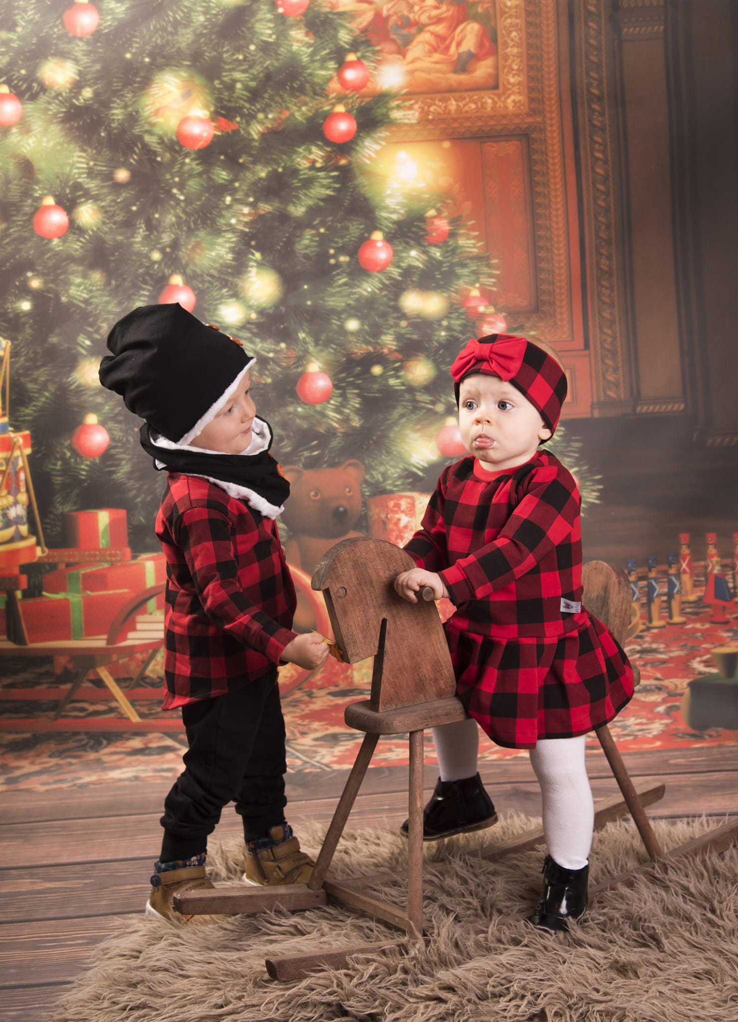 Sukienka oraz opaska - czerwona krata